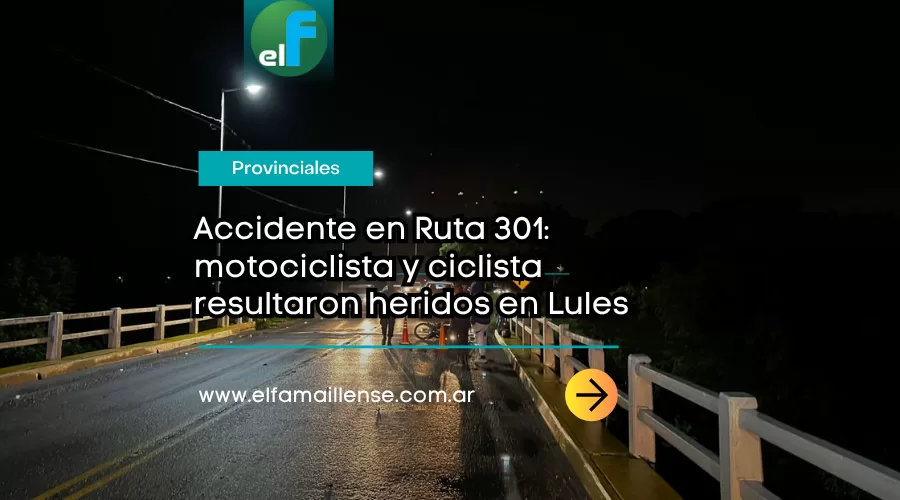 El hecho ocurrió alrededor de las 07:10, cuando personal de la Comisaría de San Isidro de Lules intervino en un accidente de tránsito sobre la Ruta Provincial 301. Por causas que son materia de investigación, una motocicleta Honda Wave 110 cc colisionó con una bicicleta rodado 26.