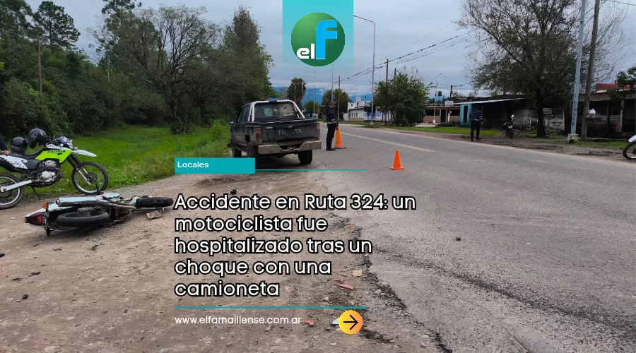 Un siniestro vial ocurrido este sábado por la mañana en Famaillá dejó como saldo a un joven motociclista hospitalizado, luego de colisionar con una camioneta en Ruta Provincial 324.