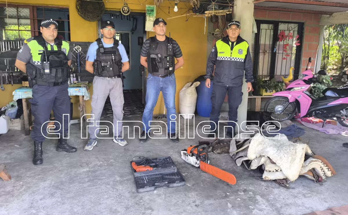 Al ingresar al domicilio señalado, el personal policial encontró y secuestró una montura completa —compuesta por peleros, lomillo, estribos, boleadoras y peyón— además de una motosierra marca Stihl y un taladro Black & Decker con su maletín y mechas.