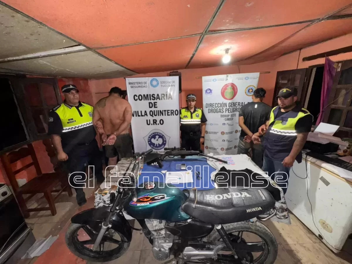 Durante el operativo, que contó con apoyo de efectivos del GOC URO, Guardia de Infantería, Patrulla Motorizada Monteros, Criminalística Oeste y DIDROP Oeste, se logró el secuestro de una motocicleta, un arma larga con mira telescópica, una réplica de arma corta y una balanza de precisión, además de un envoltorio con diez gramos de cocaína.