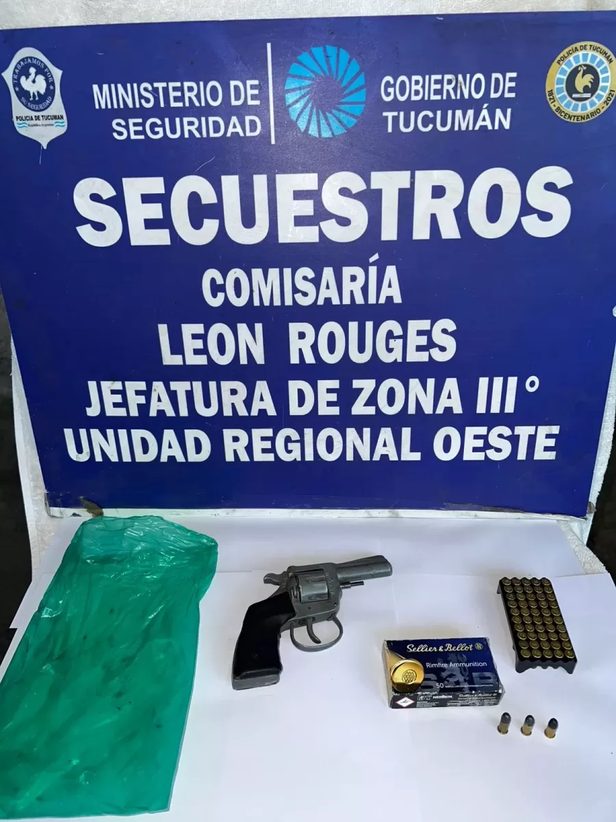 Un operativo policial en el barrio El Cuadro, de León Rouges, permitió el secuestro de un revólver calibre 22 y 53 cartuchos del mismo calibre. La medida fue ordenada por la Justicia en el marco de una causa por amenazas agravadas con el uso de arma de fuego.