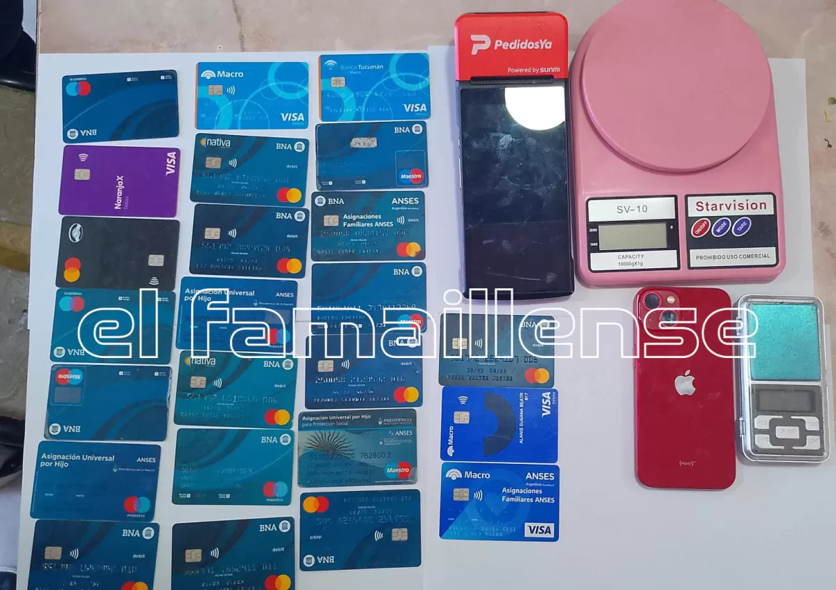 En uno de los domicilios se procedió al secuestro de un automóvil Chevrolet Corsa Classic, teléfonos celulares, un dispositivo de cobro electrónico, balanzas de precisión y una importante cantidad de tarjetas de crédito y débito de distintos bancos y titulares. Además, se incautaron diez gallos finos que serían utilizados para riñas ilegales, dando intervención a la Fiscalía correspondiente por presunta infracción a la Ley de Maltrato Animal.