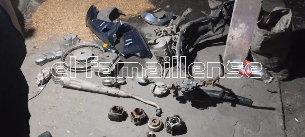 En los allanamientos, la Policía secuestró un teléfono celular marca Samsung Galaxy A06, de color blanco, que figuraba como sustraído en la causa. También se incautaron numerosas motopartes: un cuadro con motor, tres cilindros, dos tapas de motor, cinco cachas, un tanque, una llanta sin eje y un escape. Además, en una de las viviendas se produjo el hallazgo de gajos de marihuana disecados.