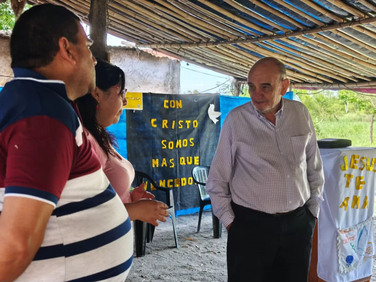 El ministro fiscal Edmundo Jiménez visitó la localidad de Manuela Pedraza, donde hizo entrega de chapas, hierros, cemento, sillas plásticas y una consola de sonido al merendero “Casa de Dios y Puertas del Cielo”, perteneciente a la Escuelita Bíblica que coordina el pastor Gabriel Saifan.