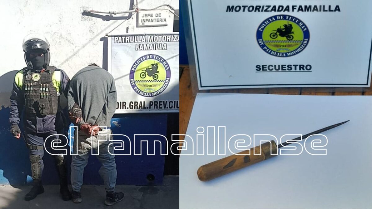 En la tarde de este miércoles, efectivos de la Patrulla Motorizada de Famaillá, dependiente de la Dirección General de Prevención Ciudadana (911), lograron la aprehensión de un joven que momentos antes había amenazado a un vecino con un arma blanca en el barrio Elías Pérez.