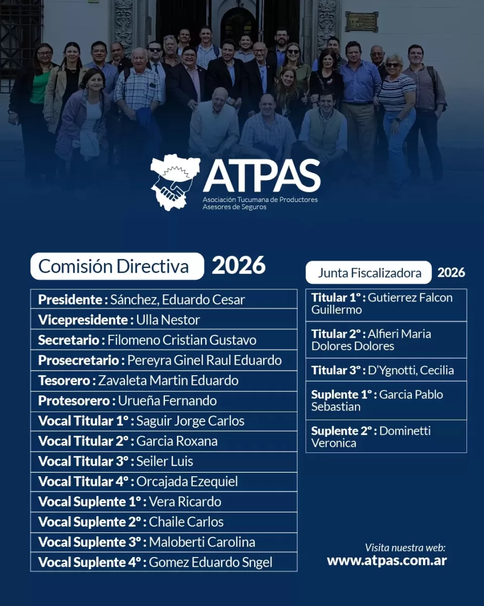 La Asociación Tucumana de Productores Asesores de Seguros llevó adelante su Asamblea General Ordinaria este 20 de abril, donde se concretó la renovación parcial de autoridades y la puesta en funciones de los nuevos representantes.