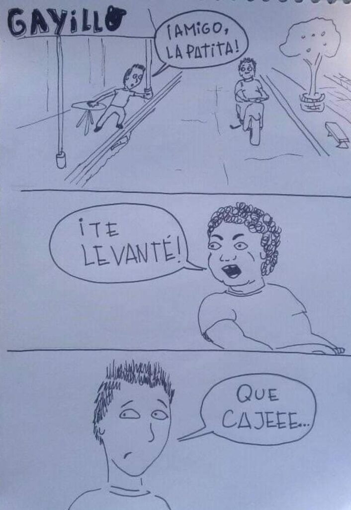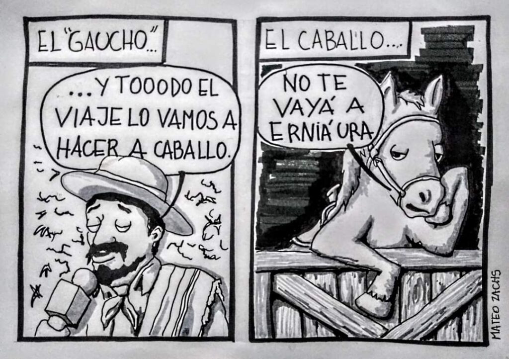 Mateo es un joven famaillense que se dedica a pintar murales, grafitear fachadas de comercios, y a expresarse por medio del arte. Sus viñetas, suelen reflejar desde un lado alegre y cómico muchas de las experiencias diarias que vivimos los famaillenses.