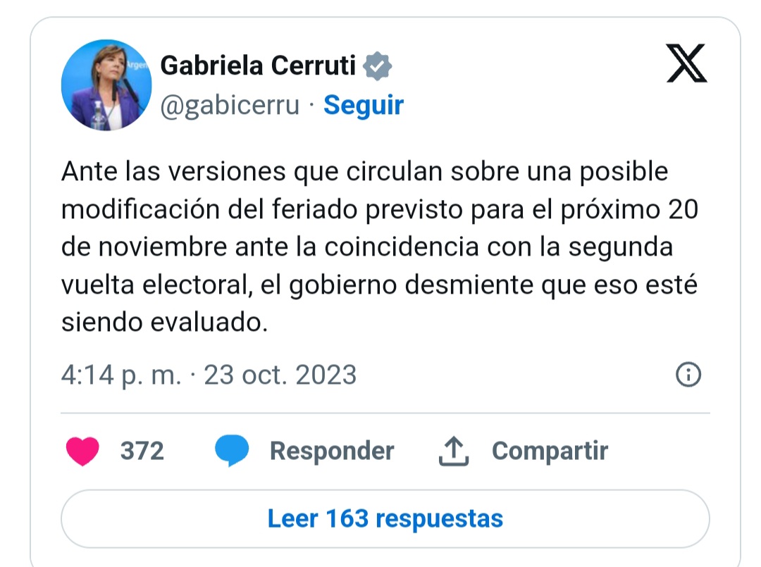 Los argentinos y argentinas acudirán a las urnas para elegir Presidente el domingo 19 de noviembre, un día antes del Feriado Nacional por el Día de...