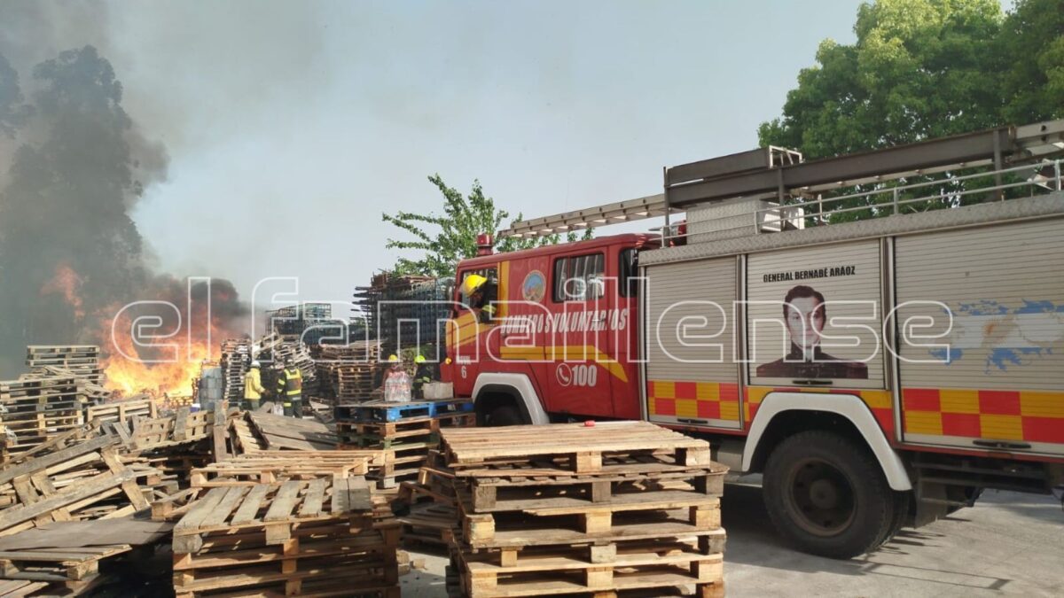 Está tarde, las llamas comenzaron a elevarse entre un montón de tarimas de madera, en la embotelladora ubicada en la ruta 38. La rápida intervención ,...