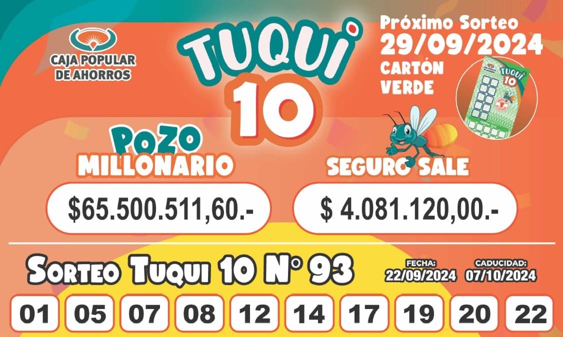 Este domingo 22 de septiembre se realizó el sorteo 93° del Tuqui 10 y el primer premio quedó vacante. Ningún tucumano o tucumana es el ganador...
