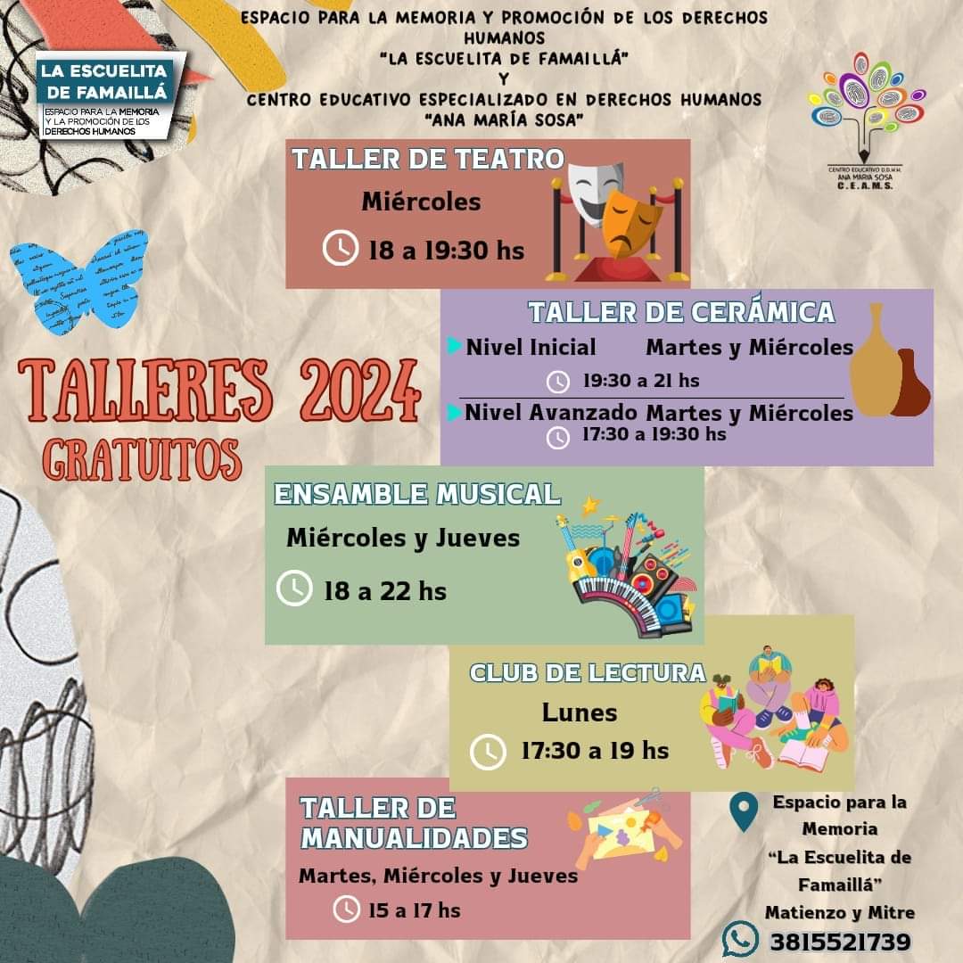 El Espacio para la Memoria, junto al Centro Educativo Especializado en Derechos Humanos “Ana Maria Sosa” abrió las inscripciones para los distintos talleres que se brindaran...