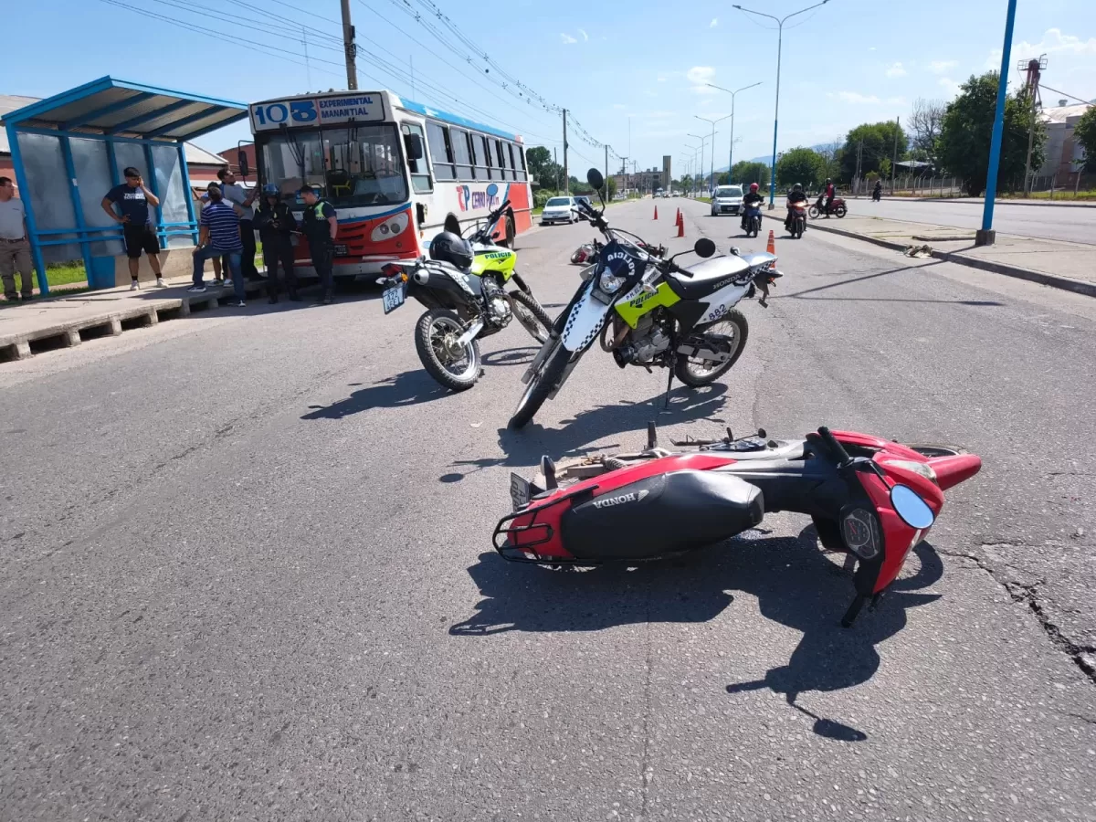 Un siniestro vial registrado durante la tarde del viernes generó la intervención de personal policial y de emergencias en la Ruta Provincial 301, en jurisdicción de El Manantial, donde colisionaron dos motocicletas y un colectivo de transporte urbano de pasajeros.