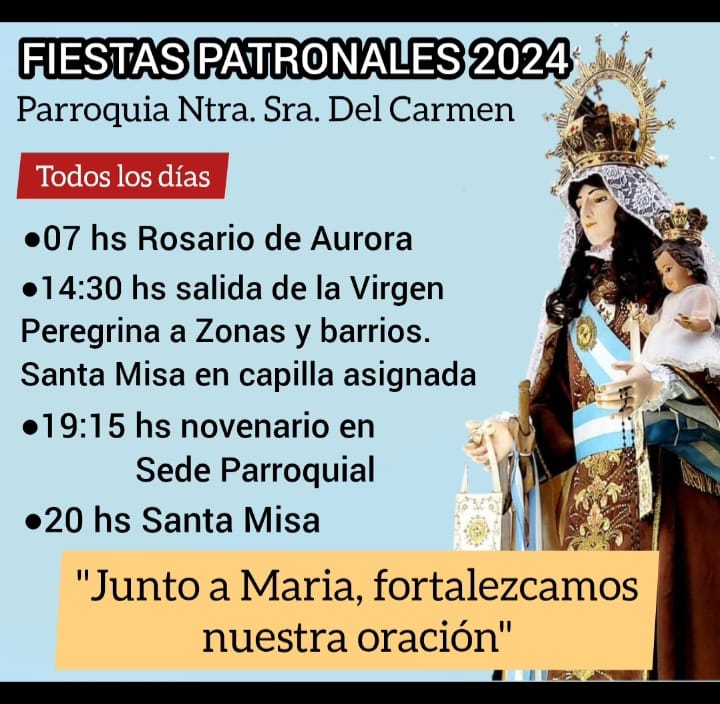 “Junto a María fortalezcamos nuestra Oración”. Las Fiestas en Honor a la Virgen del Carmen se realizarán del 6 al 16 de Julio.