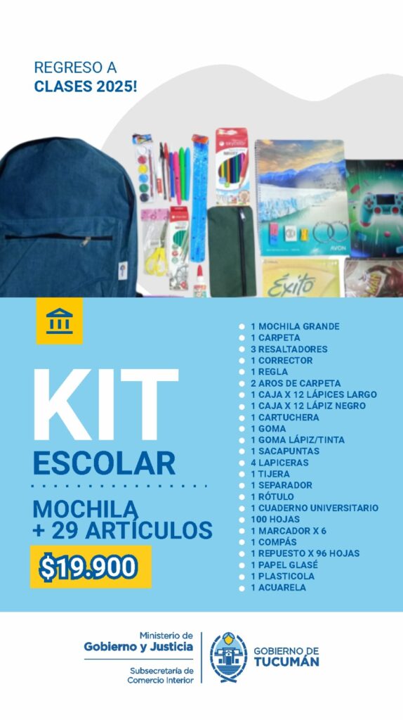 El Gobierno de Tucumán, en un trabajo conjunto con comerciantes y el sector privado, lanzó oficialmente la Canasta Escolar 2025, un programa que permitirá a las familias tucumanas acceder a útiles de calidad a precios accesibles. El programa incluye 29 artículos más una mochila, a un precio de $19.900