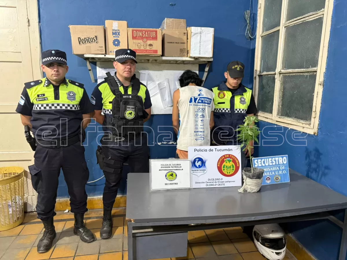 Horas más tarde, en un hecho que llamó la atención del personal interviniente, otro hombre fue sorprendido caminando por la zona de Ruta 38, a la altura del ingreso al barrio Nueva Baviera, llevando una planta en sus manos. Al efectuar el control, se constató que presentaba características compatibles con cannabis. También en este caso, DIDROP Oeste confirmó la naturaleza de la planta y se actuó según lo indicado por la Fiscalía especializada.
