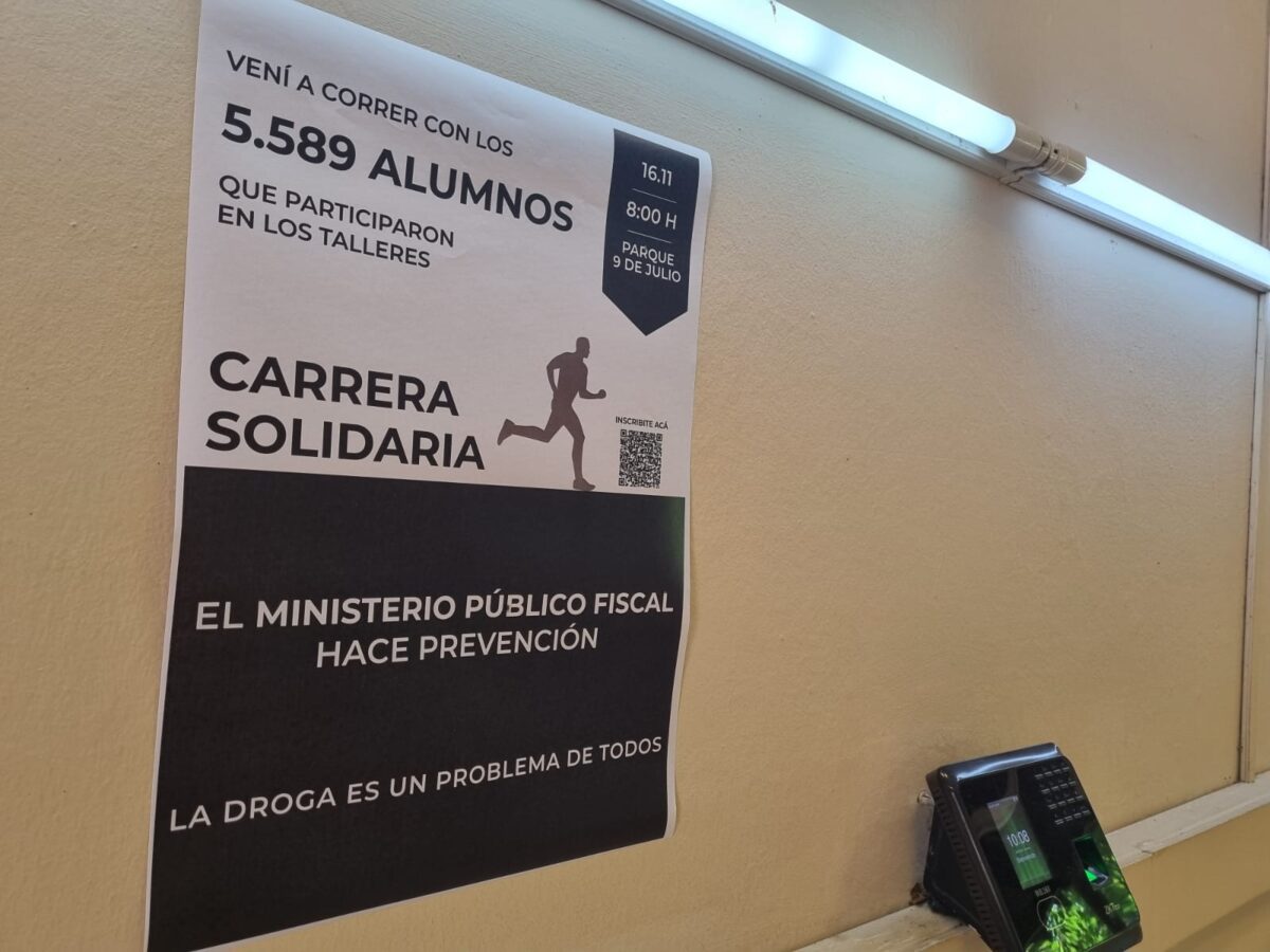 Bajo el lema “La droga es un problema de todos”, el Ministerio Público Fiscal invita a la comunidad a participar de una carrera solidaria a llevarse a cabo mañana sábado, 16 de noviembre, desde las 08:00 horas, en el ex autódromo del parque 9 de Julio. Será el cierre de la tarea desplegada por el MPF durante 2024 para concientizar a los estudiantes del nivel secundario sobre el flagelo del consumo problemático.