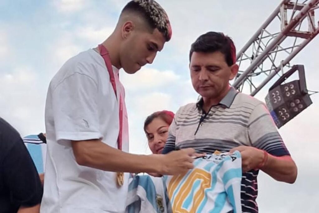 El famaillense regresó a la provincia tras ganar la Copa del Mundo con la Selección y fue homenajeado en un acto en la capital de la empanada.