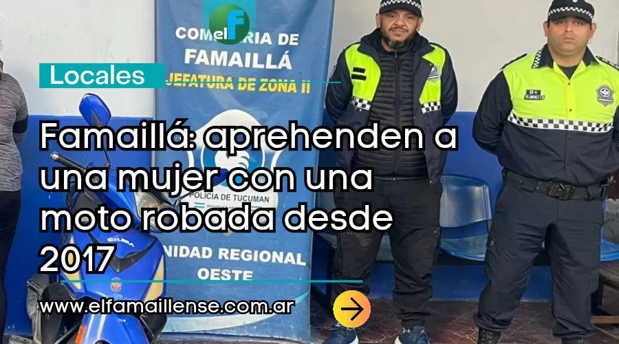 Una mujer fue aprehendida en la ciudad de Famaillá luego de ser sorprendida circulando en una motocicleta que registraba pedido de secuestro por una causa de robo agravado.