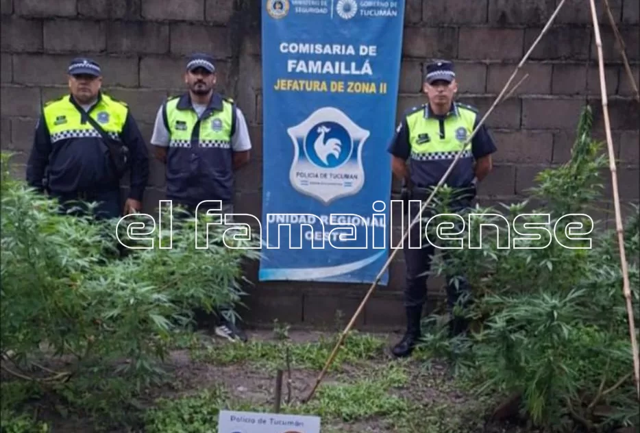 Durante un recorrido preventivo realizado por efectivos de la Comisaría de Famaillá y personal del área investigativa G-2, se produjo el hallazgo de varias plantas de cannabis sativa en una vivienda aparentemente deshabitada del barrio Chacarita, en cercanías de una cancha de fútbol.