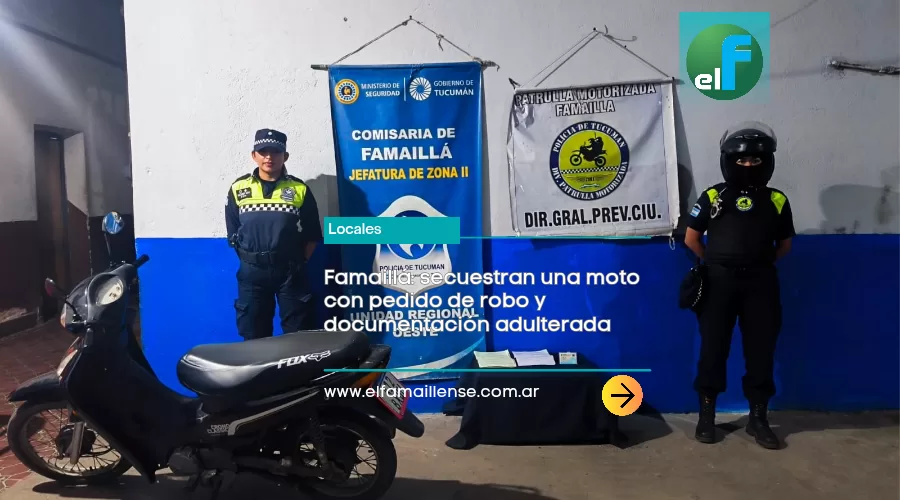 Famaillá: secuestran una moto con pedido de robo y documentación adulterada