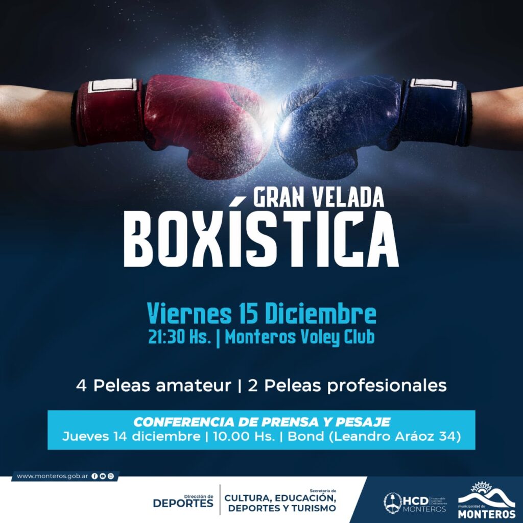 Monteros Vóley Club acogerá una gran velada boxística el próximo viernes 15 de diciembre, en donde el monterizo “Pucho” Domínguez debutará de manera profesional.