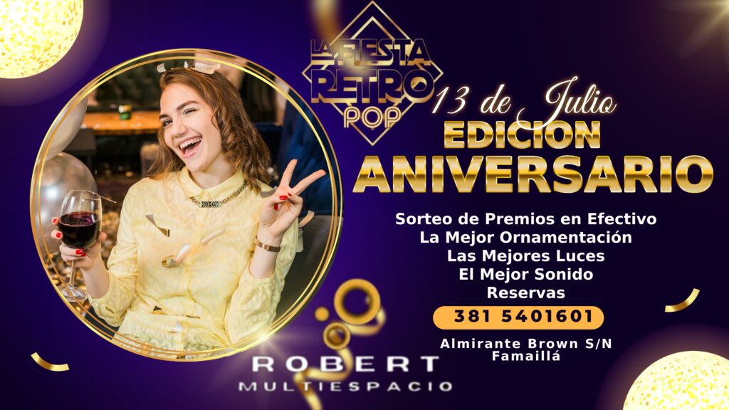 ¡Prepárate!, para una fiesta inolvidable, llena de sorpresas . Este evento tendrá lugar en Robert Multiespacio, ubicado en Almirante Brown S/N