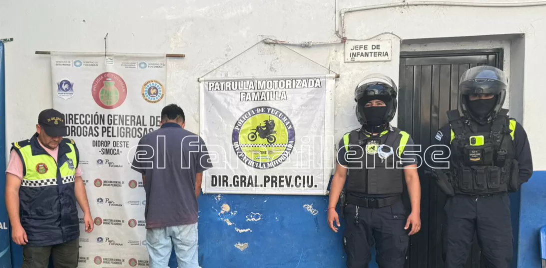 Personal de la Patrulla Motorizada de Famaillá intervino durante la tarde del jueves en un procedimiento que derivó en la demora de un joven que se encontraba en la vía pública con una sustancia prohibida.