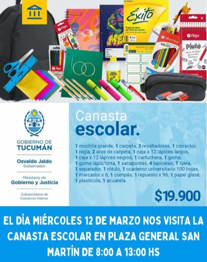 Los kit de útiles escolares por $19.900 se comercializan este miércoles desde las 8:00 hasta las 13 en la plaza San Martín.