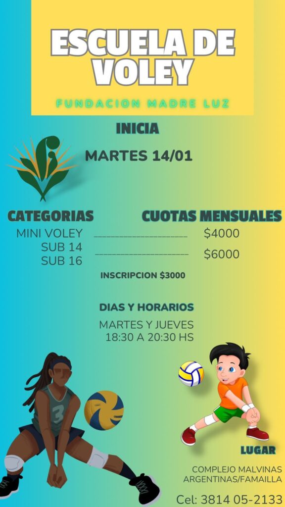 A partir de este martes 14 de enero, comienza a funcionar la Escuela de Vóley Fundación Madre Luz, un espacio pensado para fomentar el deporte y la formación de jóvenes en la disciplina del vóley.