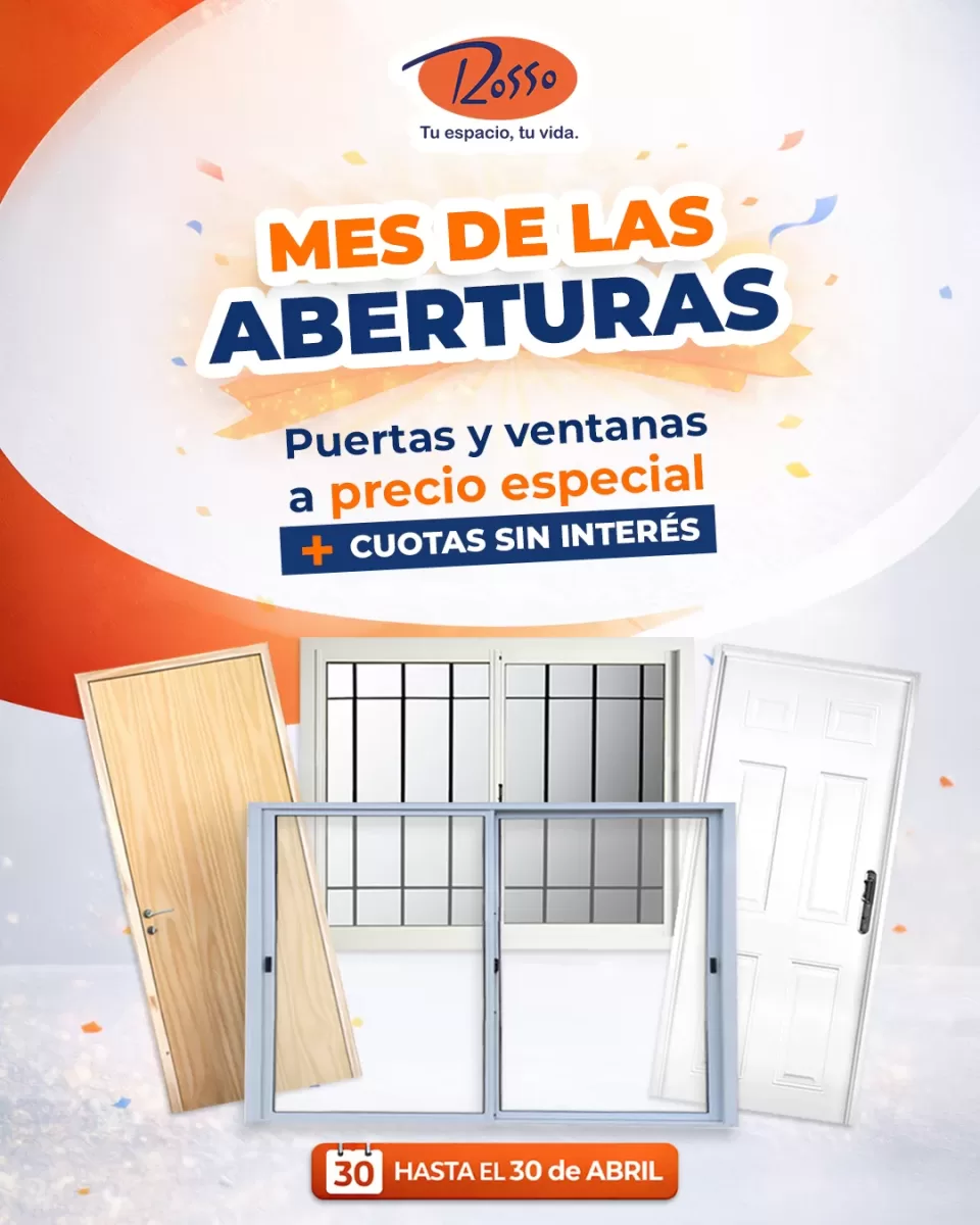 Rosso Materiales, una de las principales cadenas de materiales de construcción del norte argentino, lanzó una propuesta para sus clientes: durante todo el mes de abril, puertas y ventanas tienen precio especial y se pueden abonar en cuotas sin interés.