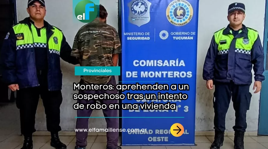 Un hombre fue aprehendido tras un intento de robo registrado en una vivienda de Monteros, en un procedimiento que contó con intervención policial.