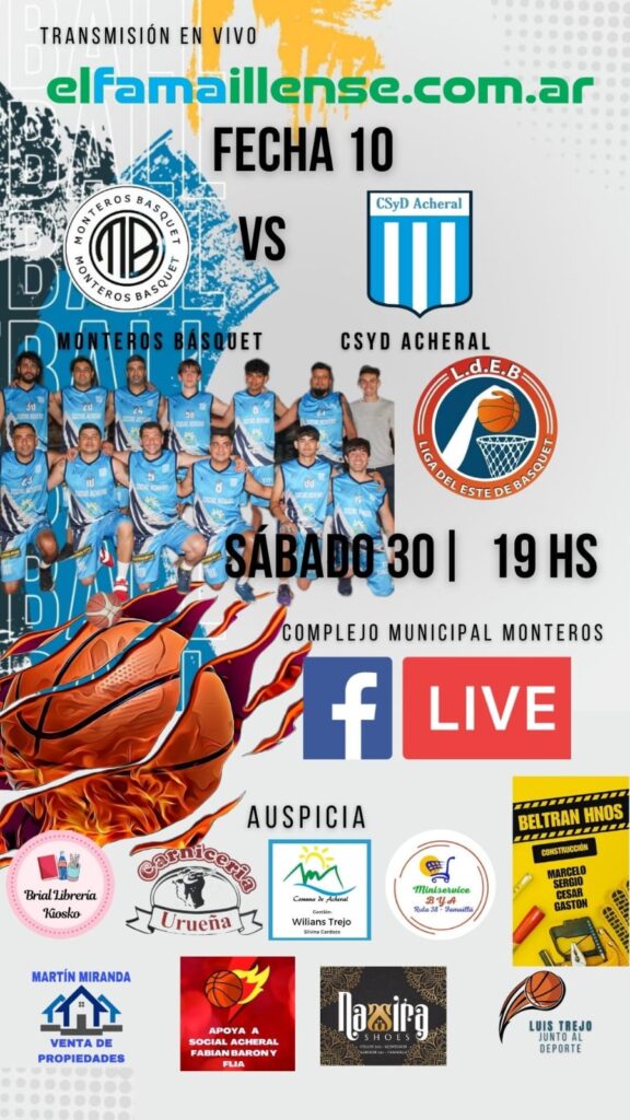 El sitio web deportivo El Famaillense será el encargado de transmitir en vivo el emocionante partido correspondiente a la Fecha 10 de la fase regular de la Liga del Este de Básquet. El enfrentamiento tendrá lugar este sábado 30 de noviembre a las 19:00 horas en el Complejo Municipal Monteros, donde se medirán Monteros Básquet y Club Social y Deportivo Acheral.