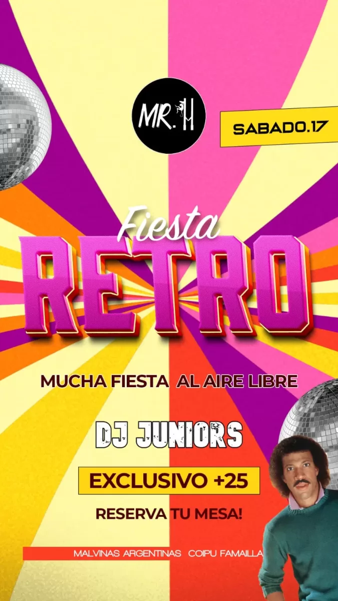 Este sábado 17, Mr. Monkey invita a vivir una Fiesta Retro al aire libre, pensada especialmente para quienes disfrutan de la buena música, el baile y un ambiente cuidado.