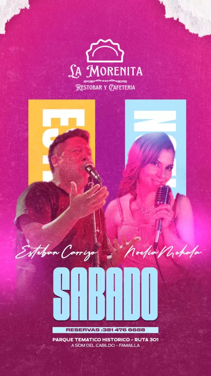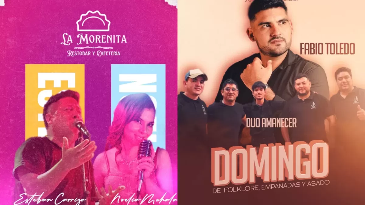 El sábado, el escenario recibirá a Esteban Carrizo junto a Noelia Moalla, quienes ofrecerán un repertorio que recorre clásicos del cancionero popular y temas bien conocidos por el público, en una noche ideal para acompañar con buena comida y un clima distendido.
