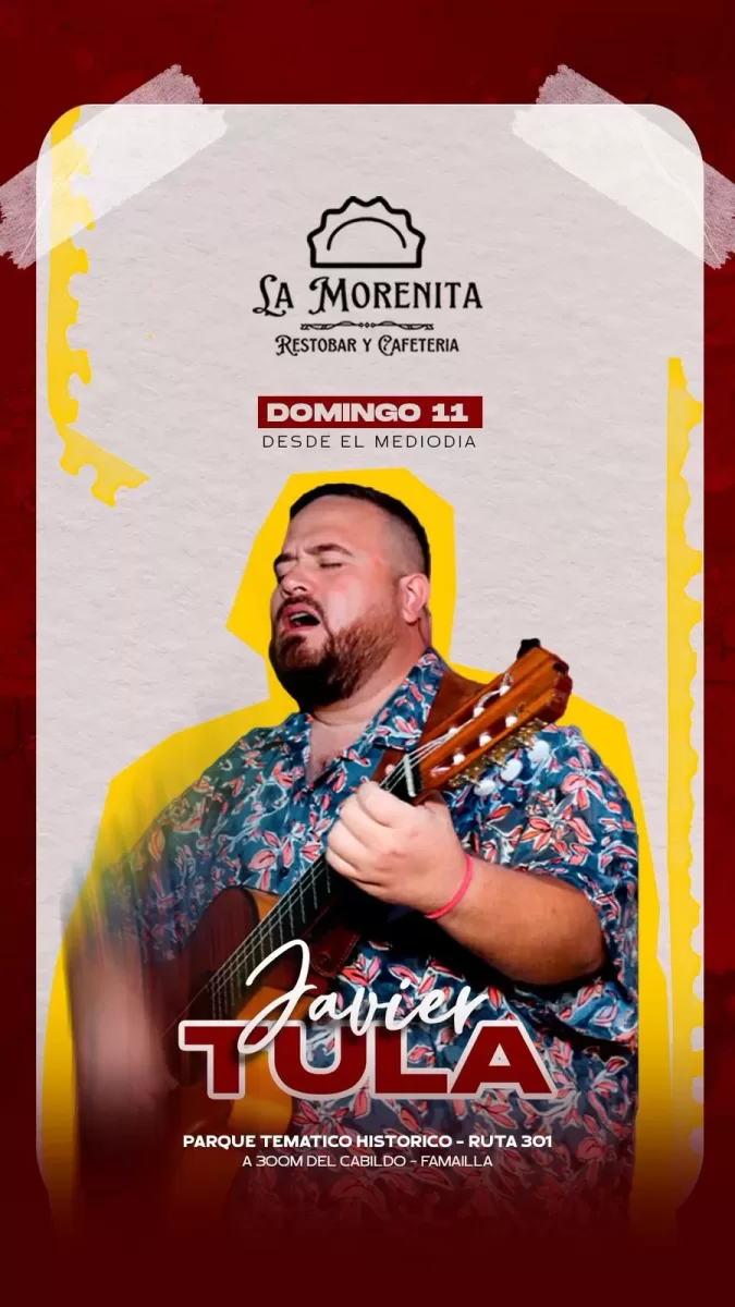 La Morenita Restobar y Cafetería prepara un fin de semana con música en vivo y opciones gastronómicas para quienes elijan salir en Famaillá. El local, ubicado en el Parque Temático Histórico sobre Ruta 301, tendrá espectáculos tanto el sábado como el domingo, acompañados por su carta habitual de parrilla y platos regionales.