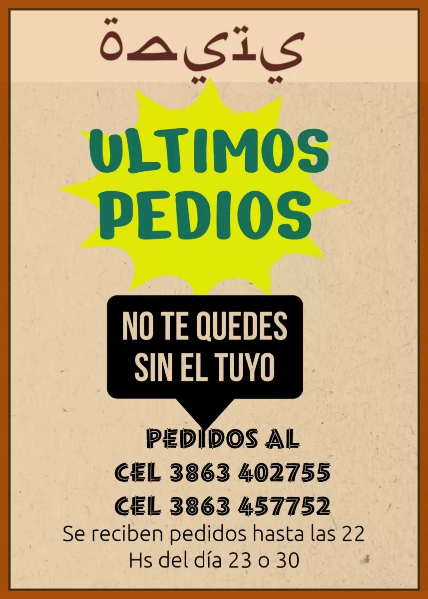 Desde Oasis informaron que los pedidos se reciben hasta las 22 horas, con fechas límite establecidas según la demanda de fin de año.