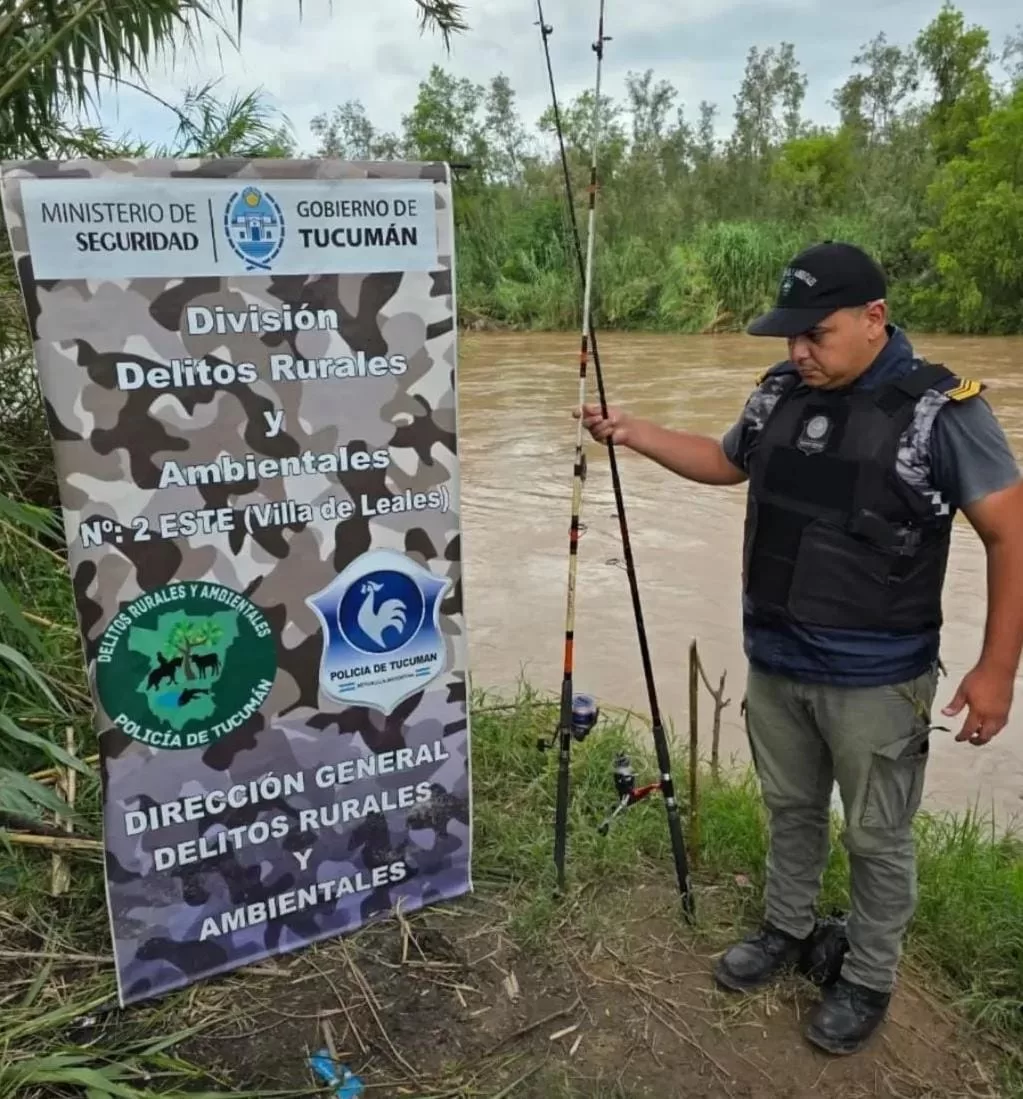 Efectivos de la División Delitos Rurales y Ambientales Villa de Leales realizaron este miércoles un operativo preventivo en distintos sectores del río Salí, con el objetivo de advertir y desalentar la actividad de pesca, actualmente vedada y considerada riesgosa por el importante caudal de agua.