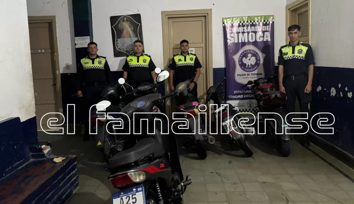 Asimismo, durante los recorridos se procedió a la retención de tres motocicletas por infracción a la Ley Nacional de Tránsito N° 24.449. El procedimiento fue informado por el oficial subayudante Alexis Nasser Eddim, auxiliar de turno de la Comisaría de Simoca, y se desarrolló bajo la supervisión del comisario inspector Víctor Marcelo Coronel, jefe de Zona II, y del comisario general Marcos Raúl Barros, jefe de la Unidad Regional Sur.