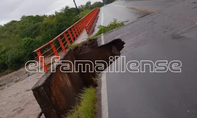 Un socavón en la RPN 307, a la altura del kilómetro 9/10 en la zona previa a Las Mesadas, Santa Lucía, obliga a circular con precaución...