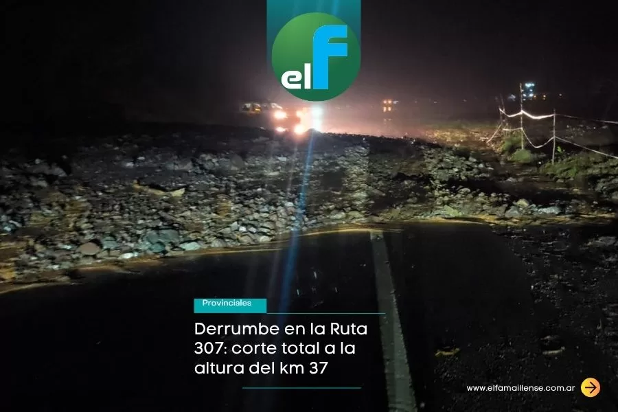 Las intensas lluvias registradas en la zona de montaña provocaron un derrumbe sobre la Ruta Provincial 307, a la altura del kilómetro 37, en el sector...