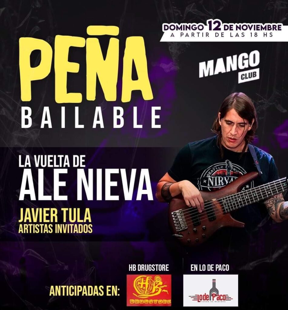 Después de un tiempo de ausencia Ale Nieva volverá a la peña, en un reencuentro íntimo con su público. También estará presente Javier Tula, además de artistas invitados en una tarde noche que promete. Las mezclas musicales llegarán de la mano de Paco Heredia para vivir una peña a todo baile.
