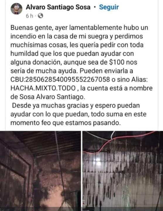 Para quienes puedan ayudar y quieran realizar una donación comunicarse al teléfono 3815301255 , acercarse al Bar Americano (Lavalle y Rivadavia) , enviar dinero al CBU:2850628540095552267058 o al Alias:HACHA.MIXTO.TODO