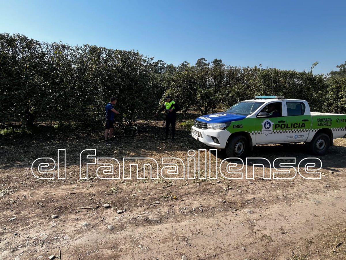 Tras recibir la alerta, los efectivos implementaron un operativo cerrojo en los alrededores de una quinta de limones, a pie y en móvil. A unos 1.000 metros, localizaron al autor, quien al notar la presencia policial abandonó los elementos robados y se dio a la fuga entre matorrales y la propiedad, sin ser alcanzado.