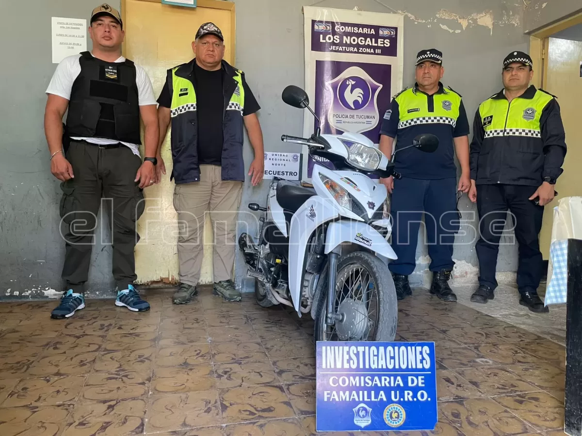Personal del área investigativa de la Comisaría de Famaillá logró recuperar una motocicleta que había sido robada en mayo del 2024, tras un procedimiento coordinado en la localidad de Los Nogales, con apoyo de la Unidad Regional Norte.