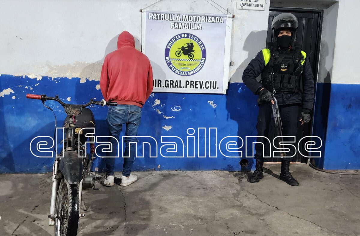 El procedimiento se realizó este domingo en la ruta provincial 301, a la altura del Paseo Histórico de Famaillá, cuando efectivos de la Patrulla Motorizada al mando de of Ppal Dardo Avila, controlaron una motocicleta marca Coven Energy 110 cc sin dominio ni chapas. El vehículo era conducido por un hombre, de 31 años.