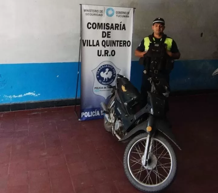 Personal policial de la Comisaría de Villa Quinteros recuperó una motocicleta que registraba pedido de secuestro por una causa de robo de motovehículo, durante un control preventivo realizado este miércoles en esa localidad.