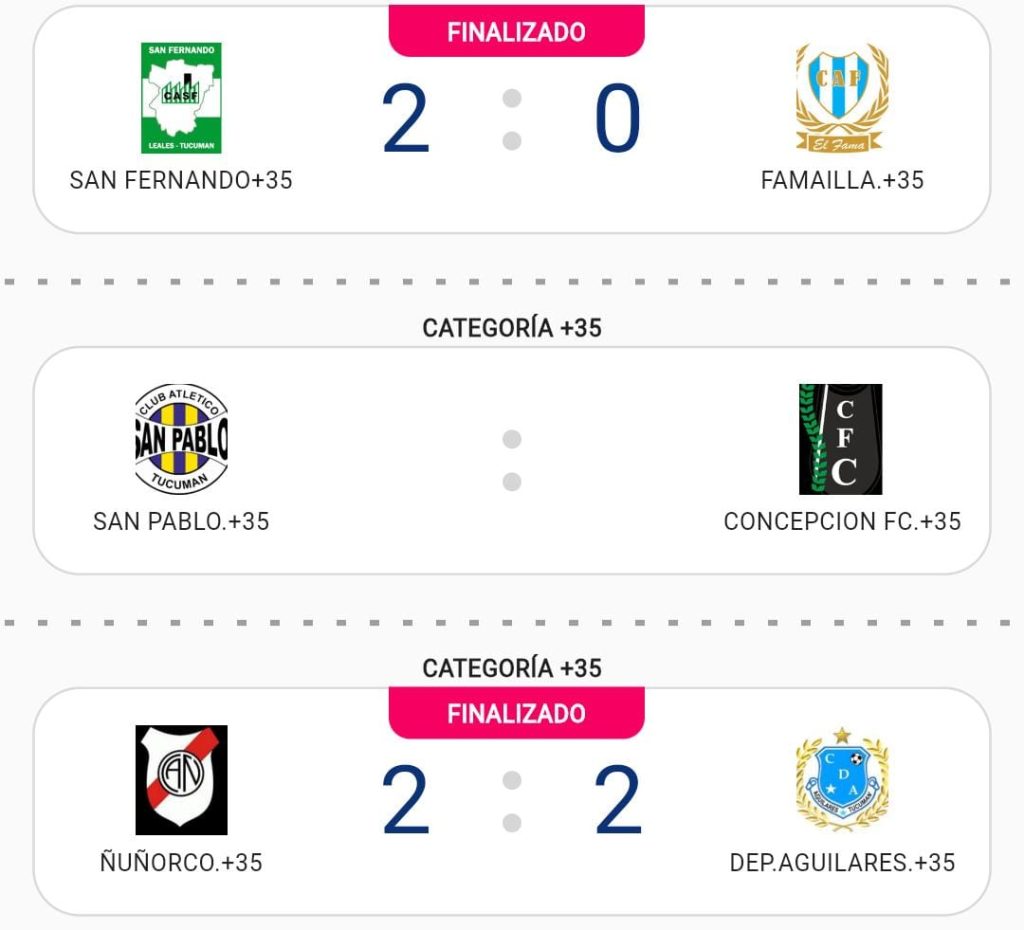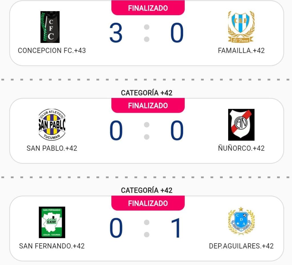 En la categoría+35 Famaillá perdió 2 a 0 con San Fernando y en los mayores de 42 años el conjunto celeste cayó en la Perla del Sur, con Concepción 3 a 0.