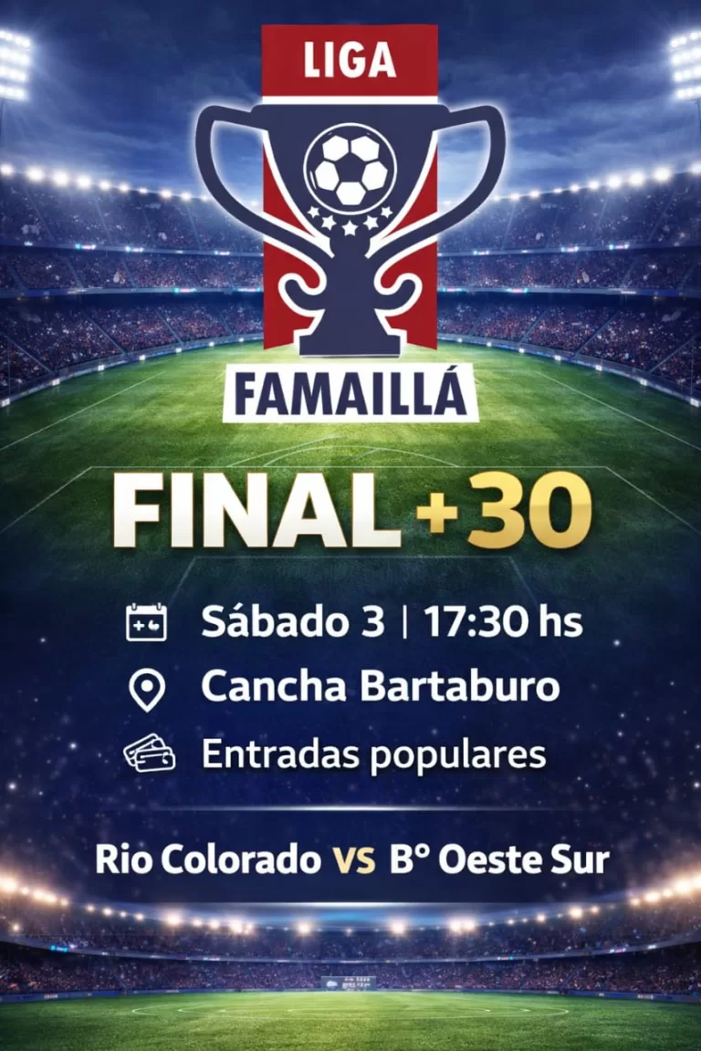La Liga Famaillá vivirá una jornada decisiva este sábado 3 de enero cuando se dispute la final de la categoría +30. Los equipos de Rio Colorado y Barrio Oeste Sur se enfrentarán para determinar quién se queda con el trofeo mayor del torneo de veteranos en la Ciudad de la Empanada.