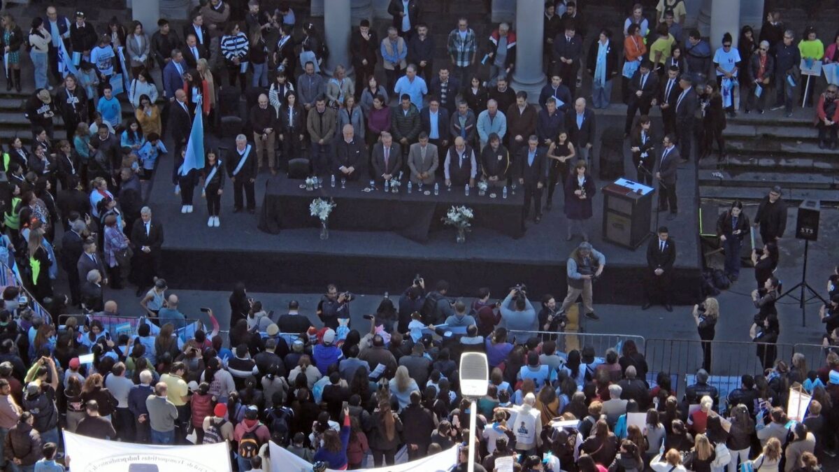 El acto simbólico central tuvo lugar en la explanada de la estación de ferrocarril Mitre (frente a plaza Alberdi). Allí, en el marco de la Semana de la Independencia, en principio se dio lectura a una declaración comunitaria patriótica, en homenaje a los próceres y a aquellas personas que hoy siguen construyendo el país desde abajo.