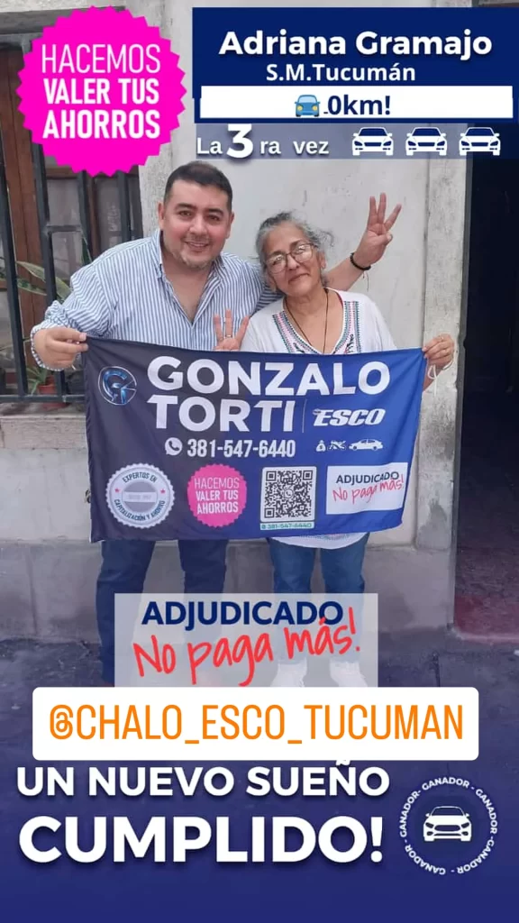Adriana Gramajo, de San Miguel de Tucumán, celebra su tercer auto 0 km adjudicado con Esco, reafirmando su confianza en el sistema de planes de ahorro que cumple sueños. Esta vez, su constancia y confianza le permitieron volver a ser protagonista de una historia de éxito.